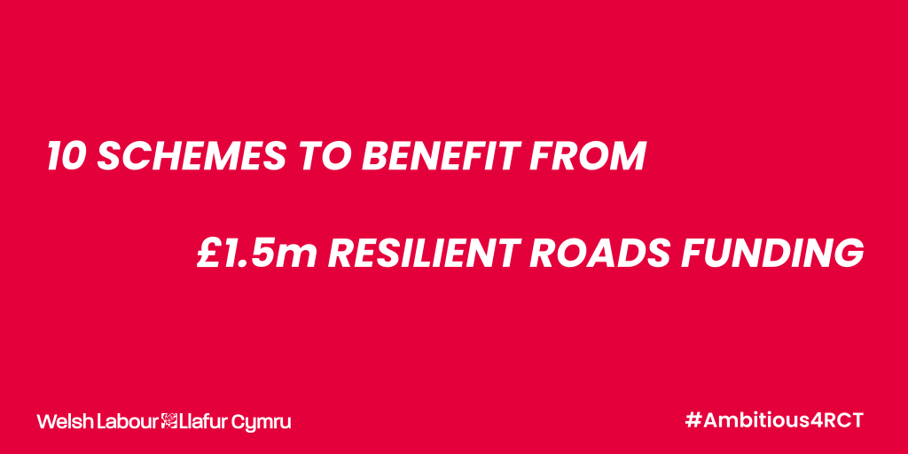 RCT Council has been successful in securing substantial Resilient Roads funding over several years, working closely with the Welsh Labour Government to deliver transportation projects that help adapt to climate change and also address the disruption that is caused by severe weather and storm events on busy roads.